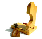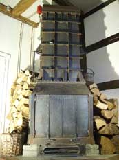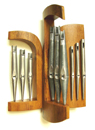 verwendetes Material: Eichenrestholz aus Furnierwerk - der für Restholzbohlen aus der Furnierherstellung typische eliptische Querschnitt wurde belassen und als Stilelement benutzt. |