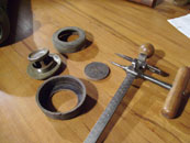eine neue Ledermanschette wird zugeschnitten - und später auf der Drehbank auf Maß gedreht |