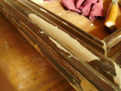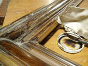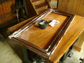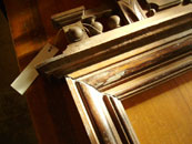 eine kleine Herausforderung: die Sanierung der Holzimitationsmalerei mit anschließender Schellackpolitur |