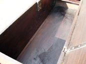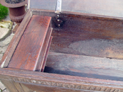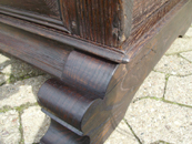 Fußhölzer, Innenkasten und fehlendes Leistenwerk wurden aus 200jährigem Eichenfachwerk rekonstruiert